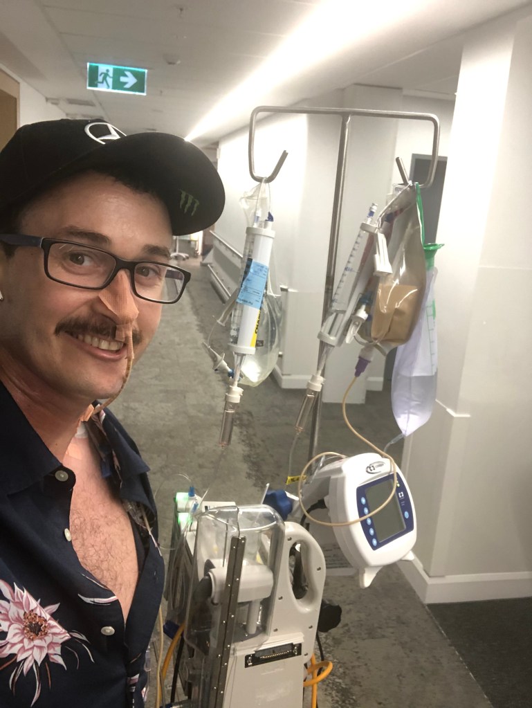 By the time of my first surgery the country was in full lock down. It was mid June 2020 when I was dropped off at the door of St. Vincents Hospital by Katey. I went inside to have a Modified Radical Neck Dissection knowing that my body will not look and feel the same again. Over forty lymph nodes were removed from my neck and the prior warnings I received were not wrong preparing me to feel like a sumo wrestler was sitting on my neck 24/7! During the surgery a biopsy was taken from what remained from my tonsil. This scared the crap out of me because I knew if I needed robotics surgery inside my mouth to remove my tonsil (Trans Oral Robotic Surgery (TORS)) it would be another ordeal where eating food would become tortuous and near on impossible. My biggest fears were realised when it was confirmed that there was still evidence of disease on my tonsil and robotics surgery would be required. On 5 July 2020 I was once again dropped off at the doors of St. Vincents hospital to have my tonsil removed in addition to part of the roof of my mouth (the soft palate). I woke from this surgery in agony. The sensation and pain were not good, and it took me to a dark dark place. It didn’t help that it looked like someone had shot a gun in my mouth. I could not drink water and as a result had to drink a thickened gloopy substitute. Equally as scary was the incessant thoughts of what next if there’s still evidence of disease. I began to make peace with potentially not winning this fight.